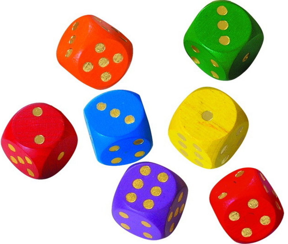 Dřevěné kostky v barvách žlutá, červená, modrá, zelená, přírodní.