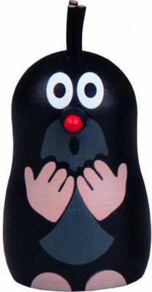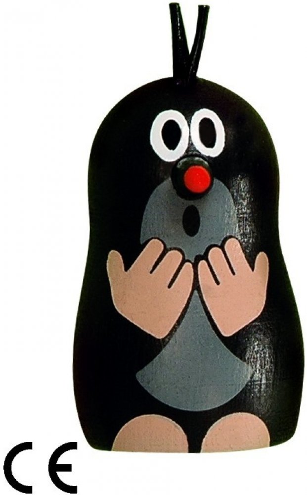 Dřevěná figurka krtečka ze dřeva s magnetem. Udivený výraz.