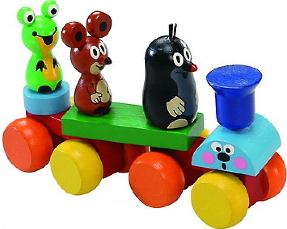 Dřevěný vláček lze libovolně skládat a měnit pořadí figurek. Mašinka má dva obličeje - veselý a udivený. Sada obsahuje Krtečka, Myšku a Žabičku, lokomotivu a vagónek. Baleno v krabici z tvrdého papíru. Nevhodné pro děti do 3 let. Obsahuje malé části. Výrobek je zdravotně nezávadný.