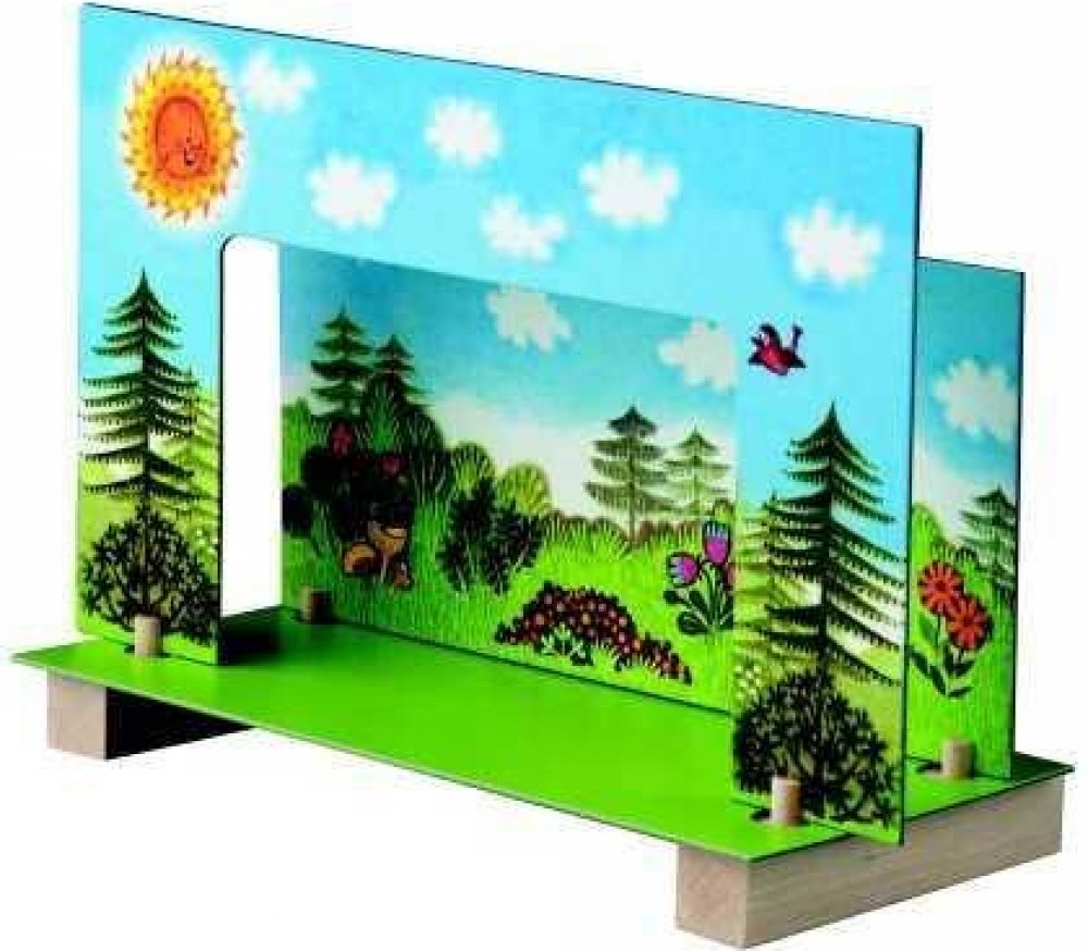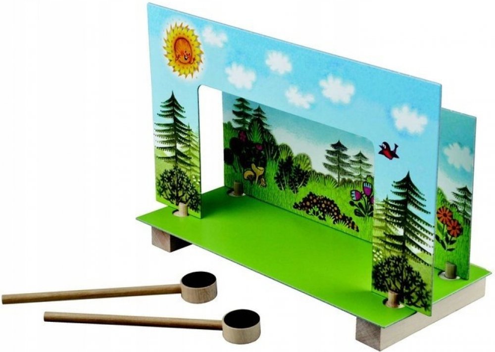 Obsahuje čtyři postavičky - Krtečka, Myšku, Zajíčka a Ježka, kulisy - léto a zima, které lze libovolně měnit. Postavičky jsou ovládány zespod jeviště pomocí magnetů.