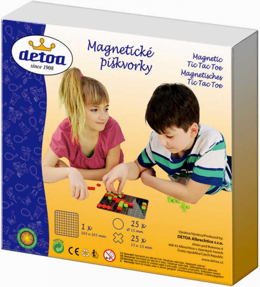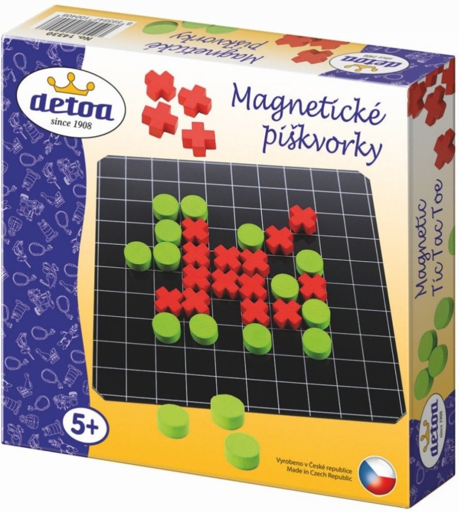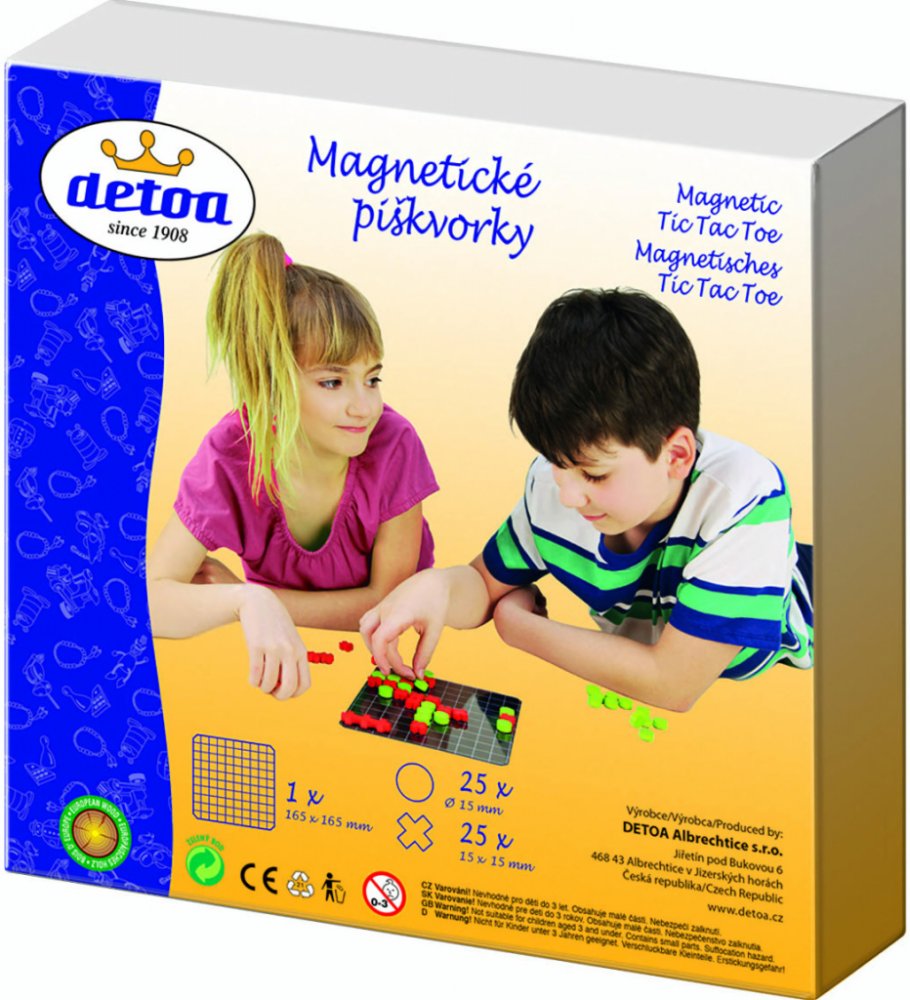 Našli jste co jste hledali. Toyboom má zboží s názvem: DETOA DŘEVO Hra Piškvorky magnetické *SPOLEČENSKÉ HRY*. Vybrali jsme pro vás nejlepší z kategorie: hry pro děti. Oblíbená strategická hra pro dva hráče v cestovním provedení. Hra obsahuje plechovou tabulku a dřevěné herní kameny, podlepené magnetem. Baleno v krabici.