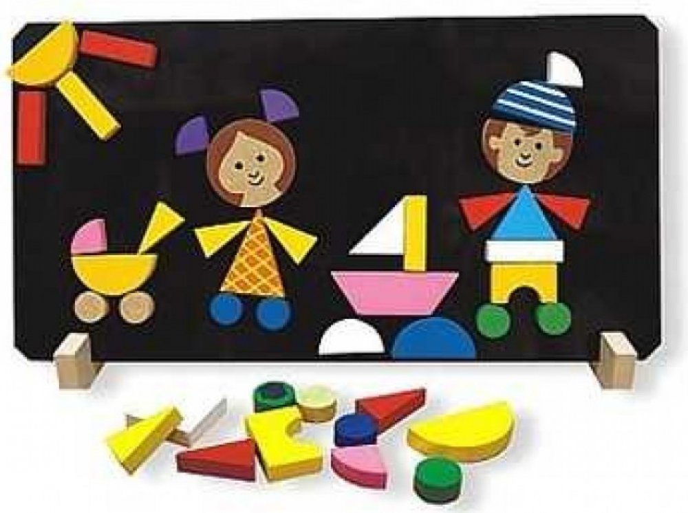 Poznají vlastnosti magnetu a jeho zábavné užití. výrobek obsahuje magnetickou tabulku, stojánek a 37 dřevěných dílků s magnetem.