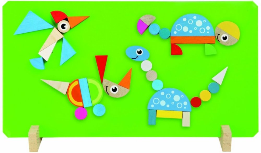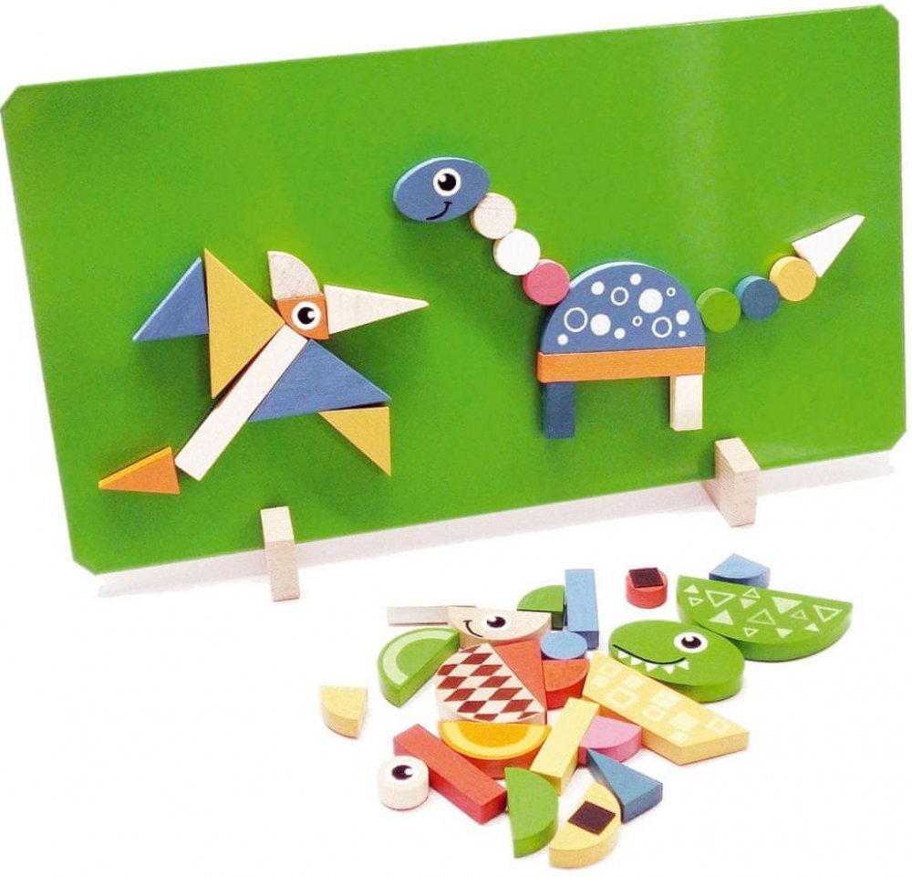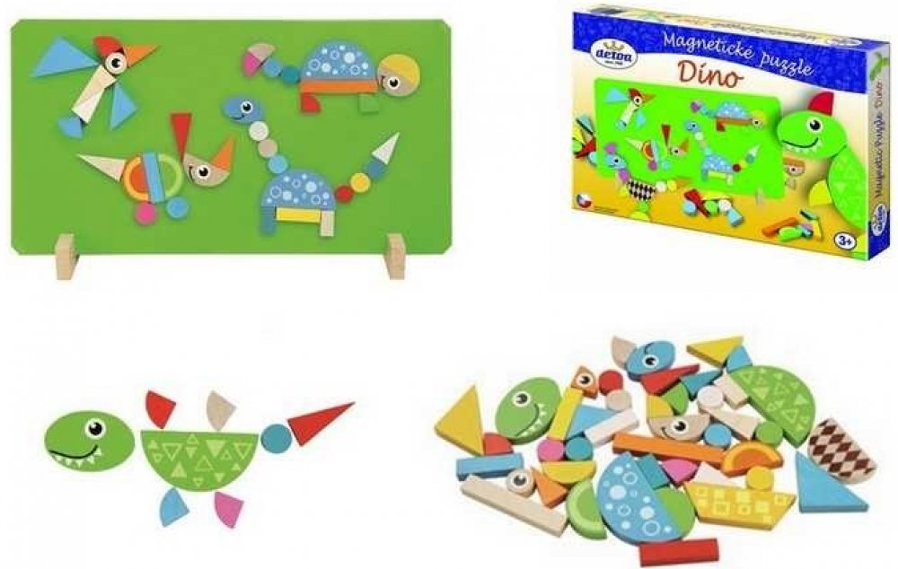 Dřevěné dílky podlepené magnetem na motivy Dinosaurů. Děti mohou skládat obrázky podle vzorů na krabici nebo si vytvářet jakékoliv vlastní dle své vlastní fantazie. Hra pomáhá rozvíjet motoriku rukou, kreativitu a fantazii dětí.