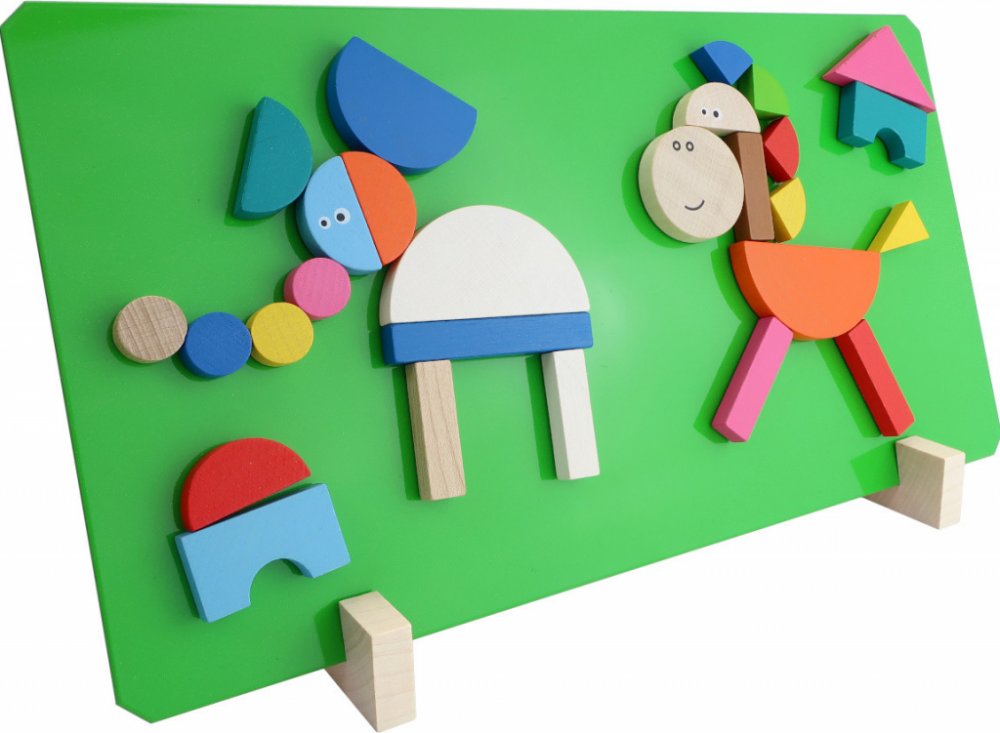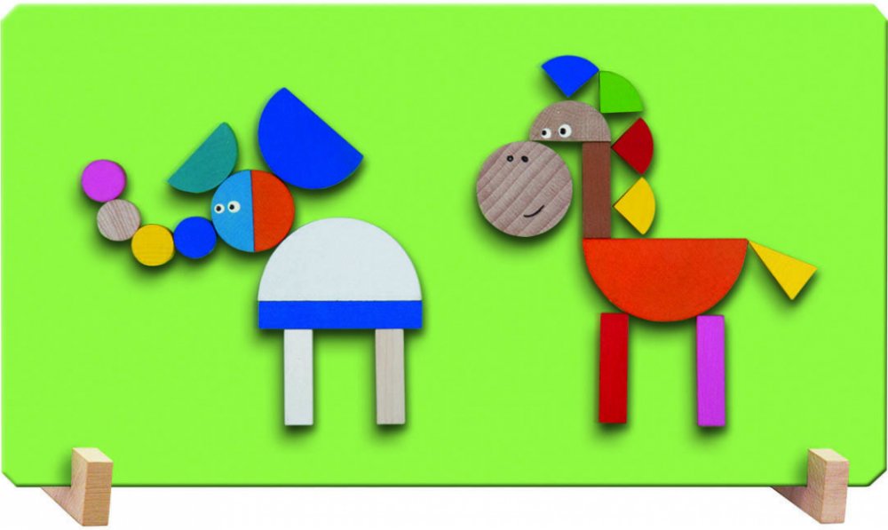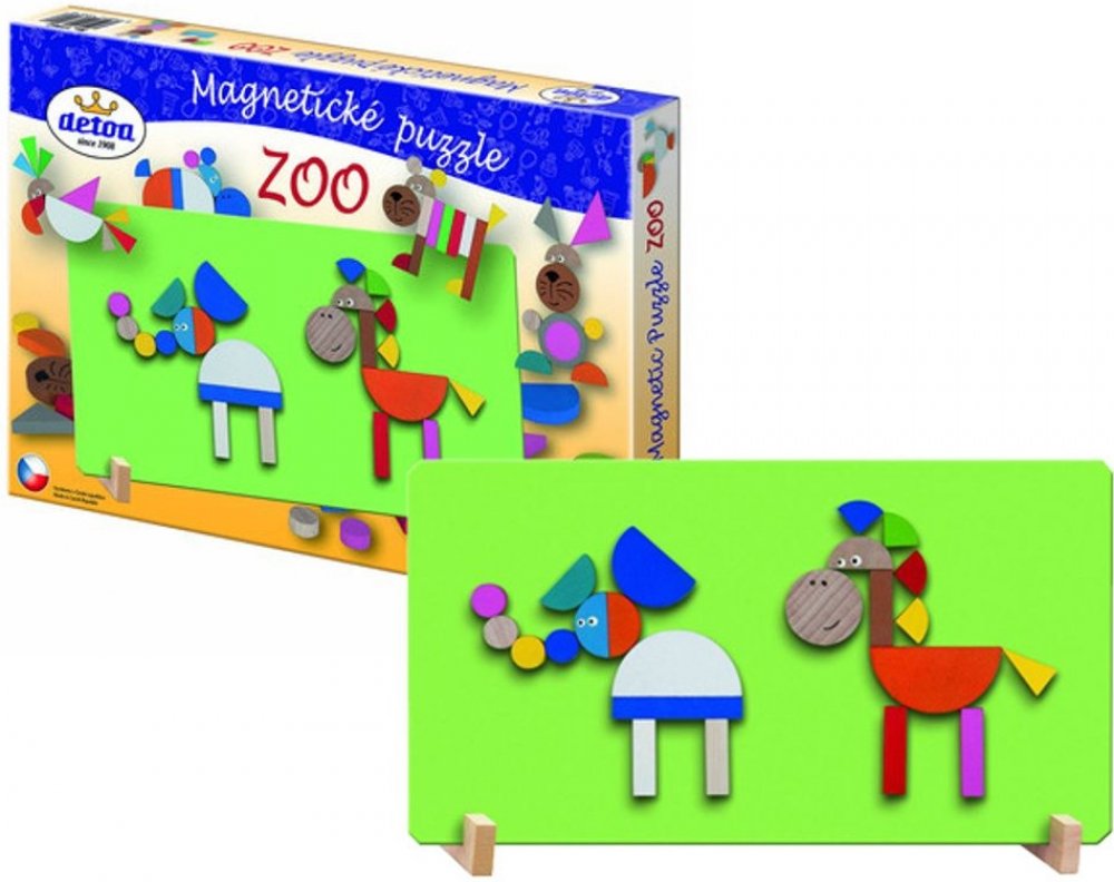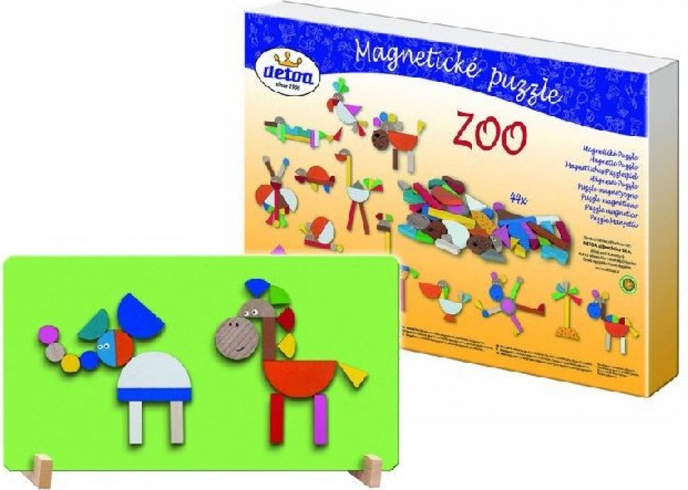 Velmi oblíbená hra pro děti, tentokrát se zvířátky. Výrobek obsahuje magnetickou tabulku zelené barvy, stojánky a 44 dřevěných dílků s magnetem, z nichž lze sestavit různé obrázky jak zvířátek, tak různých staveb, které znáš ze ZOO. Pomáhá rozvíjet jemnou motoriku, představivost a fantasii dětí. Baleno v krabici z tvrdého papíru. Nevhodné pro děti do 3 let. Obsahuje malé části. Zdravotně nezávadné...