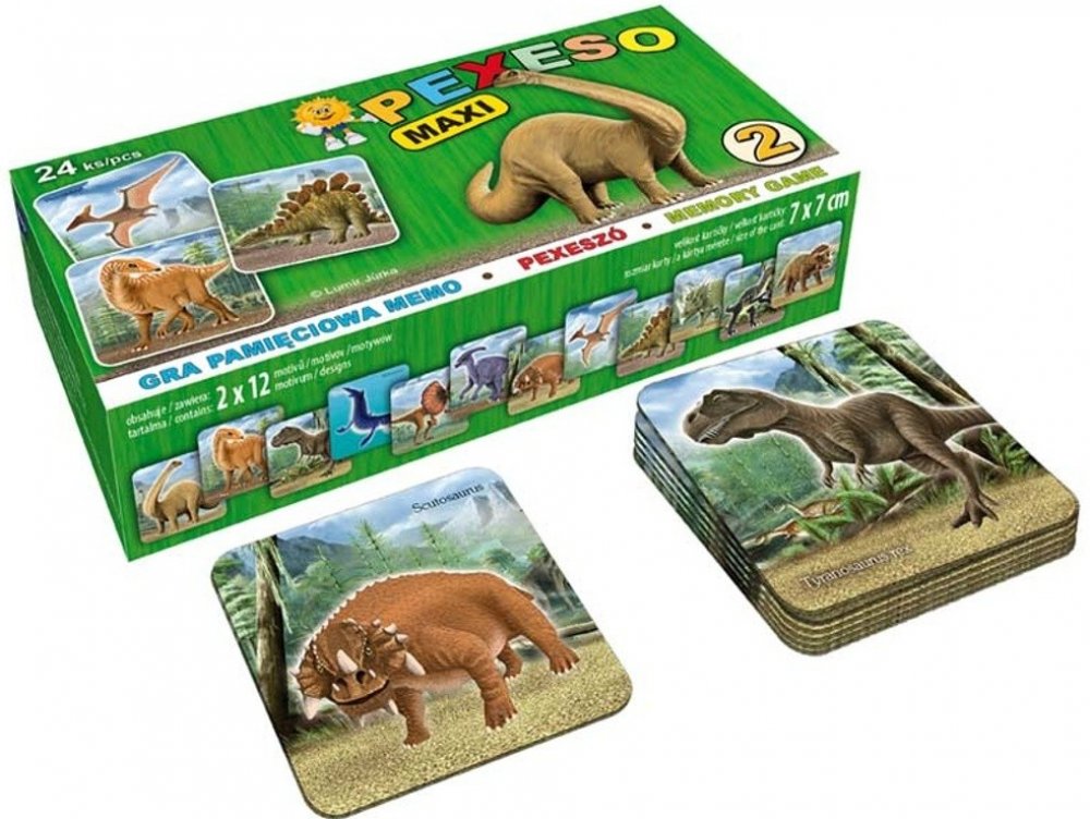 Sice nedosahuje věku dinosaurů, ale i tak je už pexeso považováno za téměř prastarou hru. To proto, že na ní není potřeba nic měnit ani znovu vymýšlet. Hra procvičující paměť a postřeh baví děti už spoustu generací. Vaši prckové nebudou výjimkou a navíc se při obracení kartiček naučí známé druhy dinosaurů.