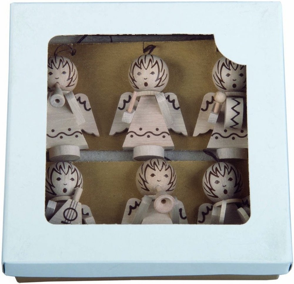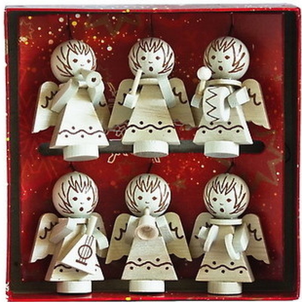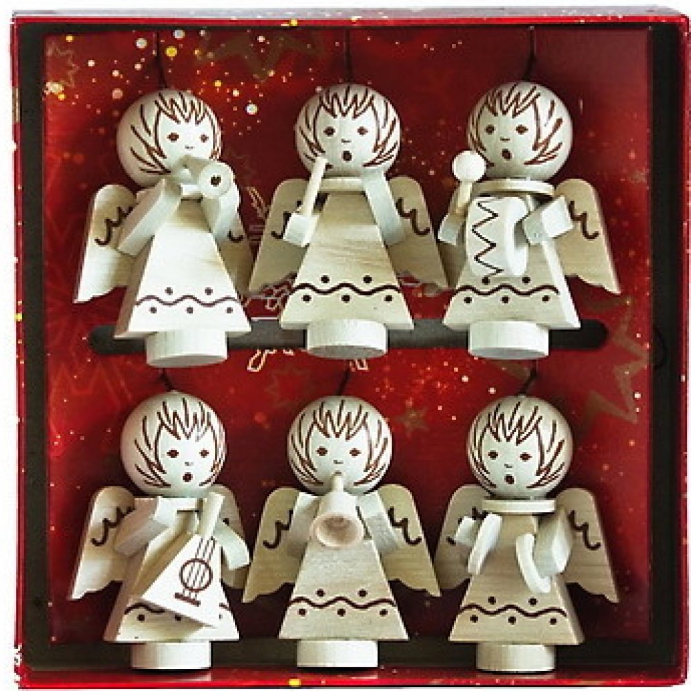Přírodní vánoční dekorace s motivem andělíčků hrajících na hudební nástroje. Ideální ozdoby na vánoční stromek. Nevhodné pro děti do 3 let. Obsahuje malé části. Hlavní vlastnosti: vhodné k zavěšeníbalení obsahuje 6 kusůsplňuje všechny normy EU na bezpečnost hraček