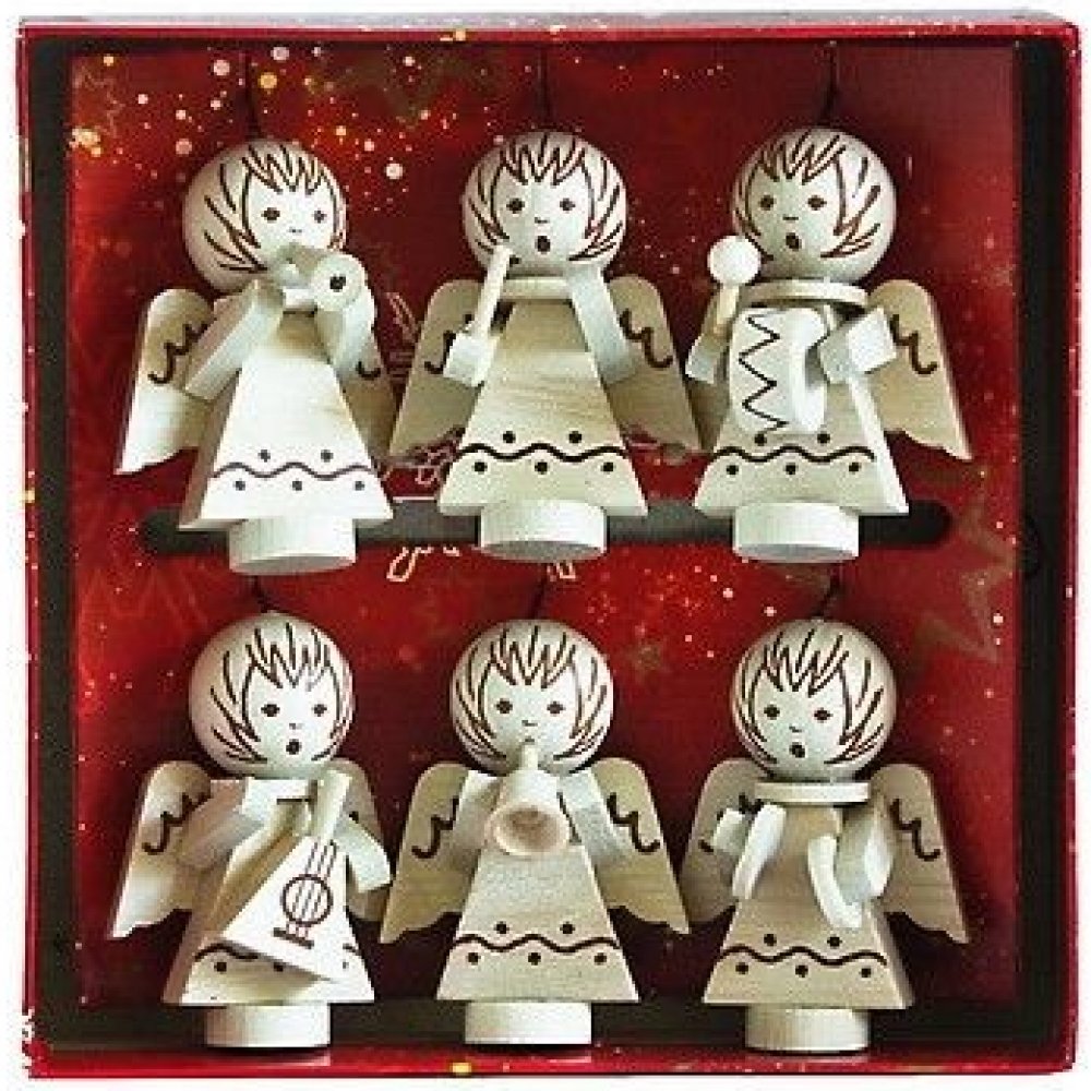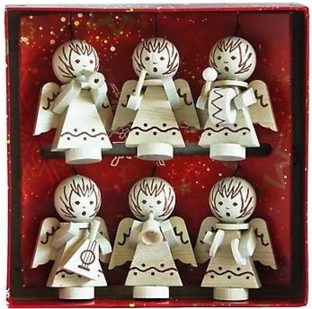 Přírodní vánoční dekorace s motivem andělíčků hrajících na hudební nástroje. Ideální ozdoby na vánoční stromek. Vhodné k zavěšení.Balení obsahuje 6 kusů. Nevhodné pro děti do 3 let. Obsahuje malé části. Výrobek splňuje požadavky EU na bezpečnost hraček.