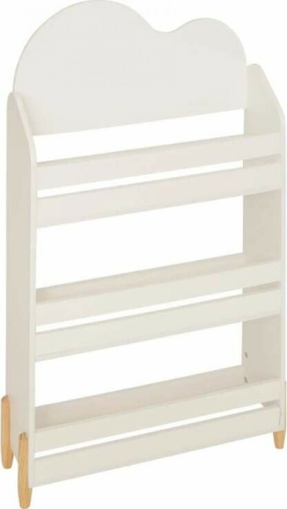 Bílá barva dodává knihovně vzdušnost, zatímco nožky z borovicového dřeva přinášejí přírodní teplo. Výřez ve tvaru mráčku podněcuje dětskou fantazii a krásně doplní světlé či skandinávské interiéry.