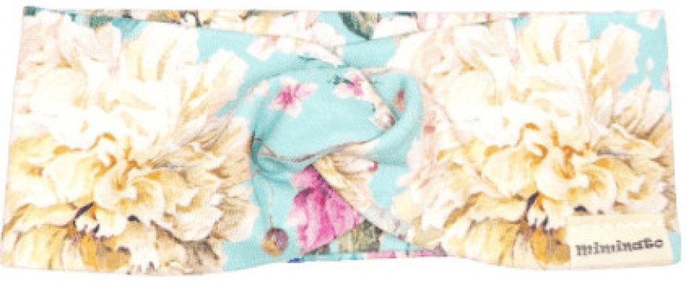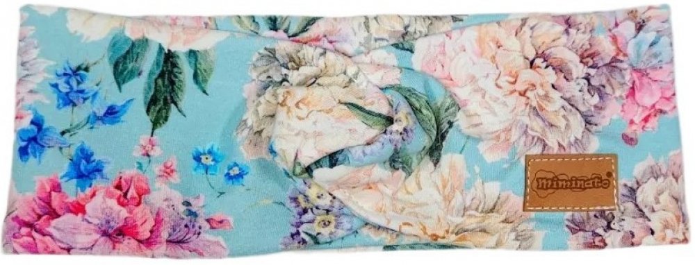 Čelenka s kytičkami na mintovém podkladu. Dětská čelenka chrání uši před větrem, dokonale se hodí do podzimního/jarního počasí.