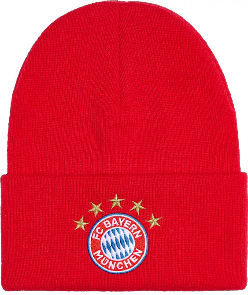 Dětská pletená zimní čepice FC Bayern Mnichov s barevným klubovým znakem.