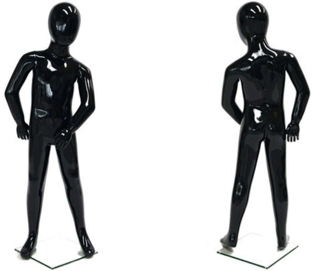 Dětský figurín plné postavy vyrobený ze skleněného vlákna potaženého pryskyřicí, poté sádrou a černým lakem. Dokonale tvarovaná silueta dítěte, které stojí trochu od sebe. Postava se skládá z 5 částí a pevného základu z vysoce kvalitního tvrzeného skla. Lze jej upevnit jak na patě, tak na lýtku, díky čemuž je možné boty vystavit. Před prodejem je každý figurín důkladně zkontrolován a poté zabalen do bublinkové fólie a 5vrstvé lepenkové krabice.