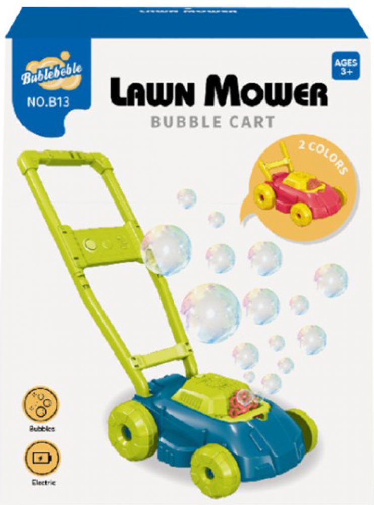 Barevná plastová sekačka s bublifukem a muzikálním efektem, na 4×AA (nezahrnuto), milióny bublin i bez baterií mechanický zvuk, pro děti od 3 let Sekání trávy s touto parádní sekačkou s bublifukem se pro tebe stane opravdovou zábavou! Nalej bublifuk (není součástí balení) do předem určeného místa a rozjeď to! Milióny malých bublinek se vznesou do prostoru a k tomu ti navíc hraje hudba! Provoz je n...