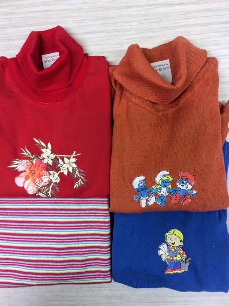 Dětský bavlněný rolák s náplety na konci rukávů, různé barvy dle obrázku.Růžový pruhovaný má ve složení trošku lycry - velice přínosné.