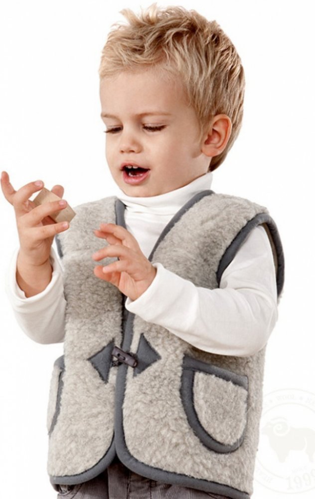 Dětská vesta je vyrobena z kvalitní ovčí vlny. Zapínání na kolíky.