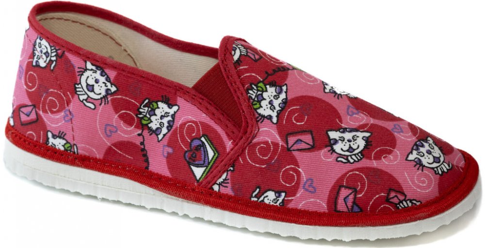 Dětské bačkory 030 Kočičky a puntíky Červená