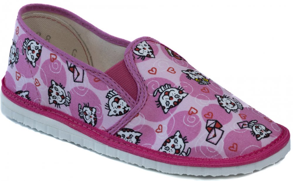 Dětské bačkory 030 Kočičky a puntíky růžové Růžová