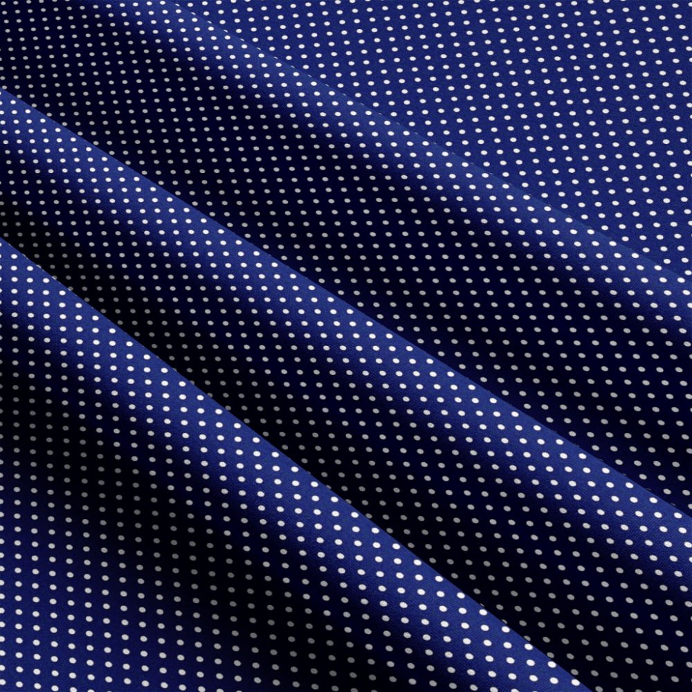 Dětské bavlněné látky, metráž. Puntík 2 mm, Bílý na Modrém