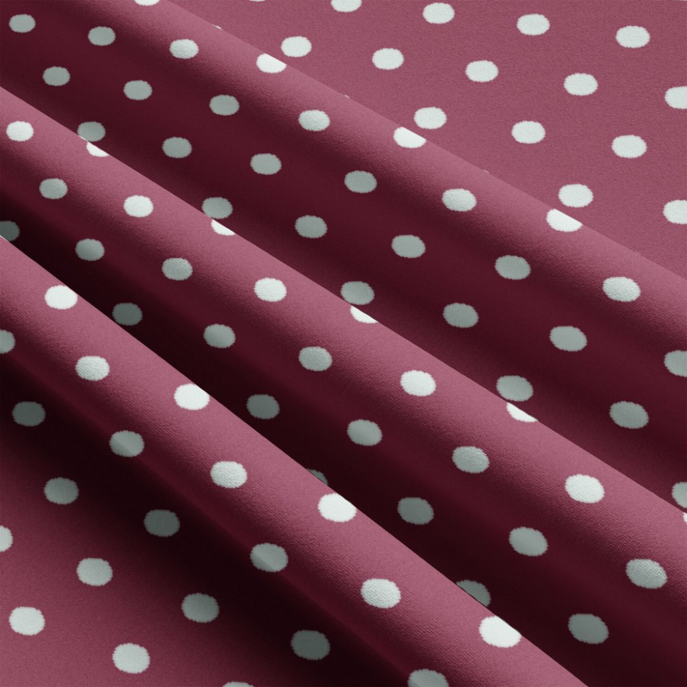 Dětské bavlněné látky, metráž. Puntík 22 mm, Bílý na Amarantovém