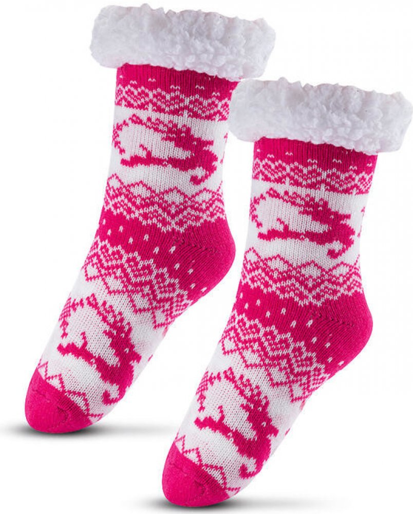 na spaní i jako přezůvky protiskluzové nopky beránková podšívka Extra teplé pletené dívčí ponožky s beránčí podšívkou a nopky na spodní straně proti uklouznutí s motivy sobíků a s huňatým beránkovým lemem. Skvělé místo domácí obuvi i na spaní či lenošení. Materiál: polyester sherpa Doporučené praní: 30 °C