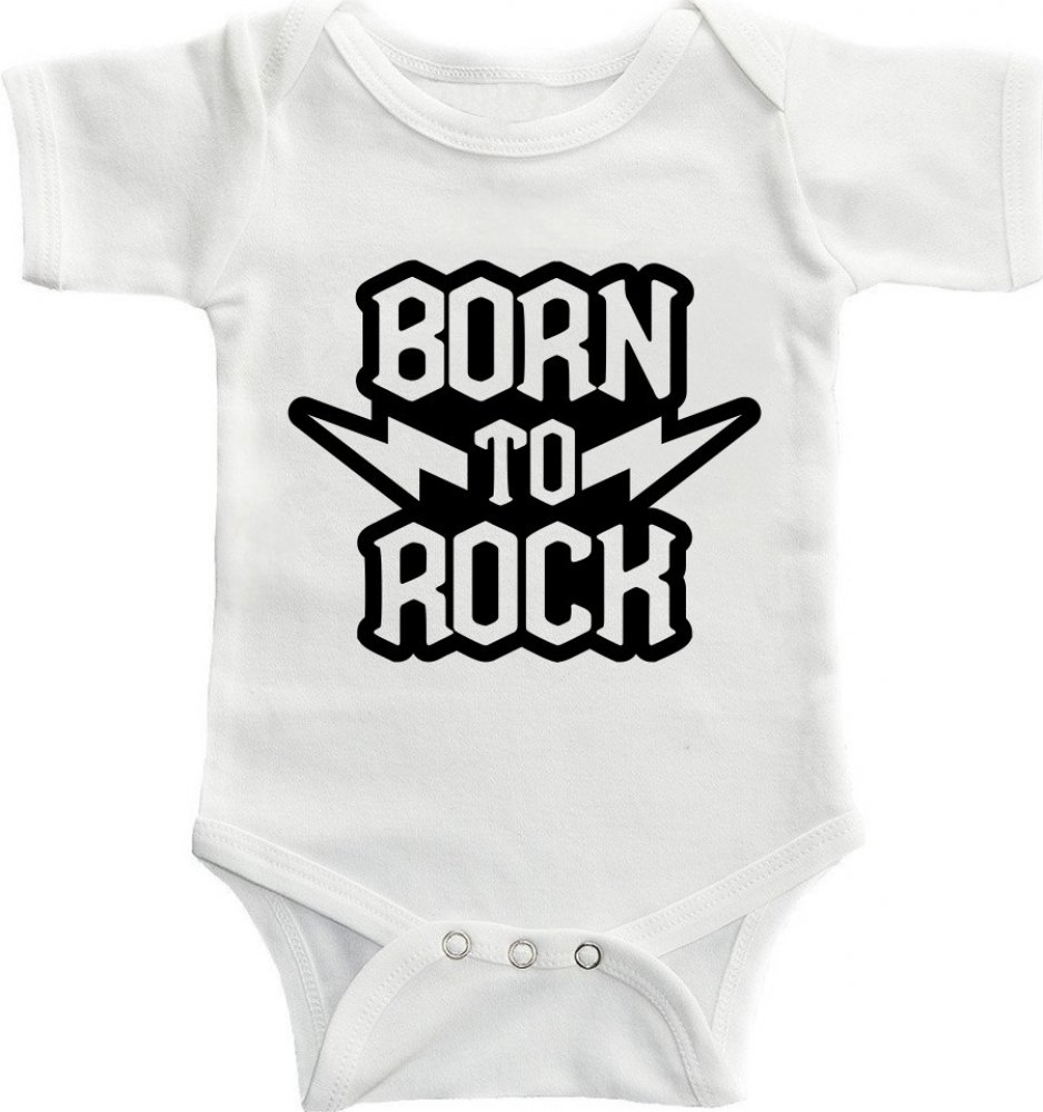 Dětské BODY Born to ROCK potisk Černá bodýčko BÍLÉ
