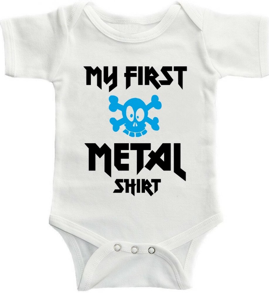 Dětské BODY My first METAL shirt skull potisk Černá Modrá bodýčko BÍLÉ