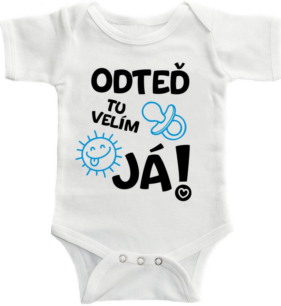 Dětské BODY Odteď tu velím já! Barva potisku: Černá + Modrá, Velikost: 3 měsíce, Barva BODÝČKA: BÍLÉ