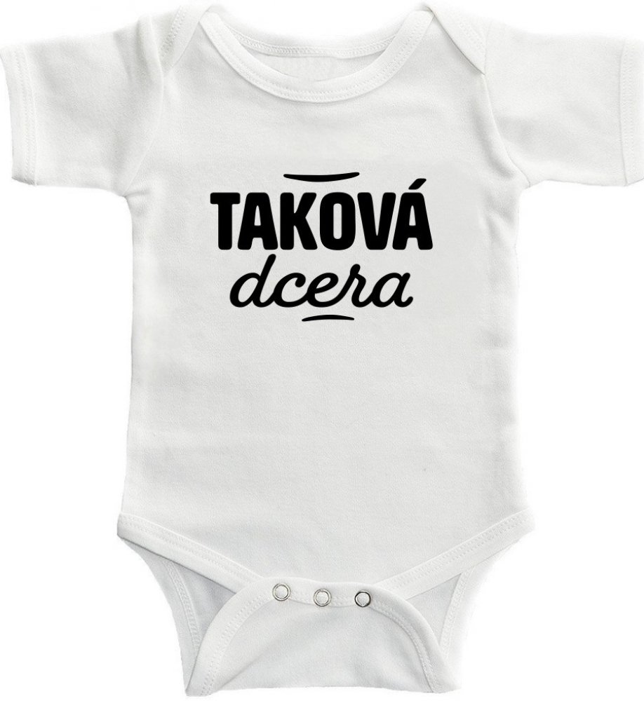 1 samotné body pro další dceru s potiskem Taková DCERA je doplňující produkt celého setu jaká máma nebo, jaký otec, taková dcera. Set trička a bodýčka je skvělou volbou jako dárek například na Vánoce pod stromeček pro maminku nebo, pro tatínka a dceru, nebo jako originální dárek ke dni otců, či dni matek. V nabídce si můžete vybrat z více barevných variant.