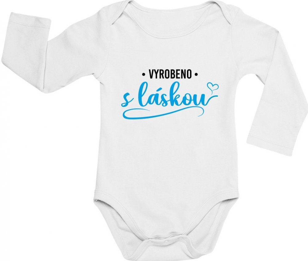 Dětské BODY Vyrobeno s láskou dlouhý rukáv potisk Černá Modrá bodýčko BÍLÉ
