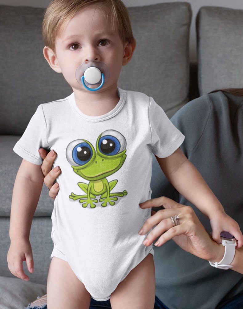 Dětské body se stylovým potiskem žáby. Žáby nejsou jen obyčejné zvířátka. Věděli jste, že žába dokáže předpověď počasí? Dětské body pro ty nejmenší.