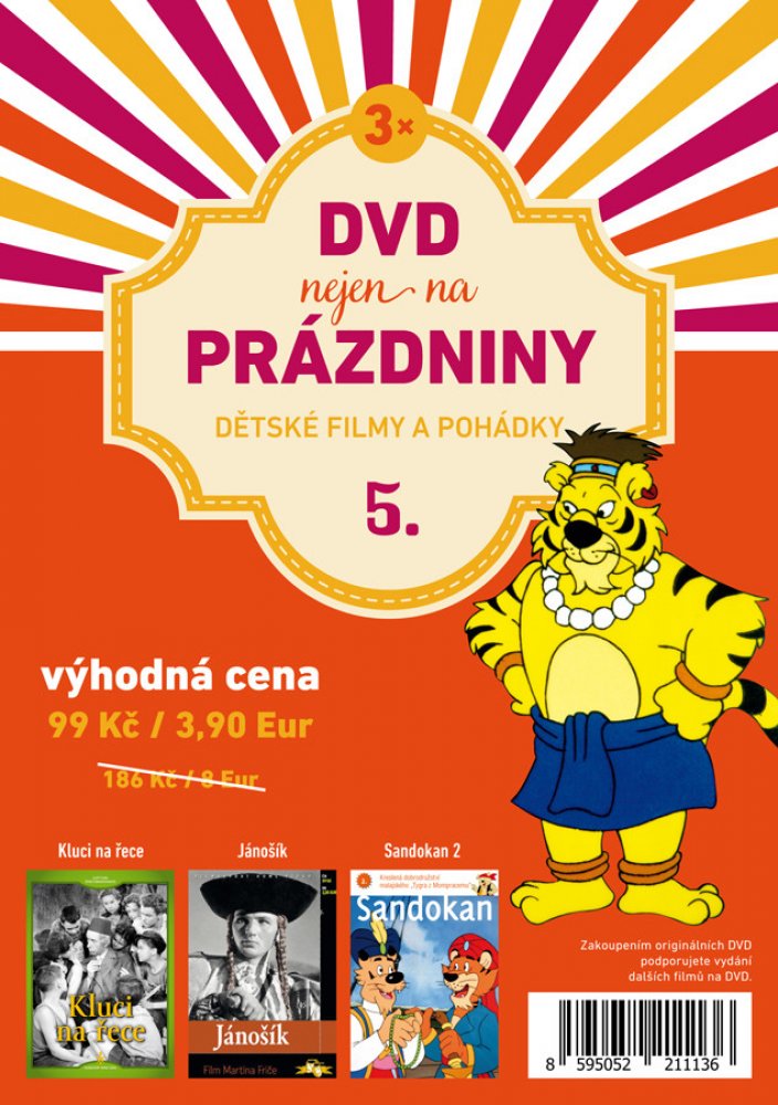 Kluci na řece - digipack ČR, 1944, 91 min., čb Hrají: Terezie Brzková, Eduard Kohout, Karel Černý, Zdeňka Baldová, Zorka Janů, Svatopluk Beneš, Jindřich Plachta, Marie Blažková, Libuše Stehlíková, Karel Richter, Oleg Reif Lyrický příběh z venkovského města vystavěný ze vzpomínek Václava Kršky na mládí Na břehu klidné řeky, protékající idylickým městem, stojí starý panský dům opředený mnoha tajemstvími a záhadami. A právě proto padl do oka partě mladých kluků, Portyčáků, kteří se ho rozhodli prozkoumat. V domě je překvapí paní Magdaléna a její vnučka Helena. Kluci utečou, patnáctiletý Tomík to však nestihne. S oběma ženami si promluví a zjistí, že v domě se neskrývá žádné tajemství, jen nešťastná stará paní, které velmi chybí její syn. Clapci by ženu rádi rozveselili. Kromě toho jejich myšlenky také zaměstnává nepřátelská parta, tzv. Bakouni. Spor obou táborů se vyhrotí a dojde k bitvě. Kdo nakonec vyhraje? TITULKY: české pro neslyšící Jánošík – papírová pošetka ČR, 1935, 76 min., čb Hrají: Paľo Bielik, Zlata Hajdúková, Andrej Bagar, Theodor Pištěk, Ján Borodáč, Elena Hálková, Filip Dávidík, Vladimír Majer, Alois Peterka, Jaroslav Marvan, Jindřich Plachta, Jánošíka nemôžete zabiť, Jánošík je sloboda a sloboda je večná Roku Pána 1711, keď sa Jánošík vracal zo štúdií v Trnave domov do Terchovej, našiel matku mŕtvu a otca na smrť zbitého. Postrach kraja, gróf Šándor Révayi, kázal jeho otca zbiť na dereši. Jánošík opúšťa svoju milú Aničku a ide do hôr pomstiť sa pánom. Následujú ho aj iní a všetci majú jedinú myšlienku: trestať pánov za ich neľudskosť, panovačnosť a krivdy, páchané na chudobnom slovenskom ľude. Veď títo páni nielen, že vycicávali ľud, ale bili ho a mučili, kedy sa im len zapáčilo. Jánošík a jeho druhovia šli proti pánom smelo. Rozháňali im stáda, pálili majere a škodili im, kde len mohli. Neboli to zločinci, ale hrdinovia, ktorí brali pánom, aby mohli chudobným rozdávať. TITULKY: české pro neslyšící Sandokan 2 – papírová pošetka 5. - 8. díl, Španělsko, 1990, 4 x 26 min., barevný animovaný film, český dabing Příběhy vypráví o dobrodružných výpravách pirátů z Mompracemu, které vede statečný a neohrožený Sandokan. Tentokrát se spolu se Sandokanem a jeho věrnými přáteli vydáme brázdit vlny oceánu, prodírat se malajskou džunglí a prožívat neuvěřitelná dobrodružství i velkou lásku. Známý španělský výtvarník Jose Guardia natočil tuto 26-ti dílnou sérii po světovém úspěchu jeho předchozím kresleném seriálu o Willy Fogovi „Cesta kolem světa za 80 dní“.