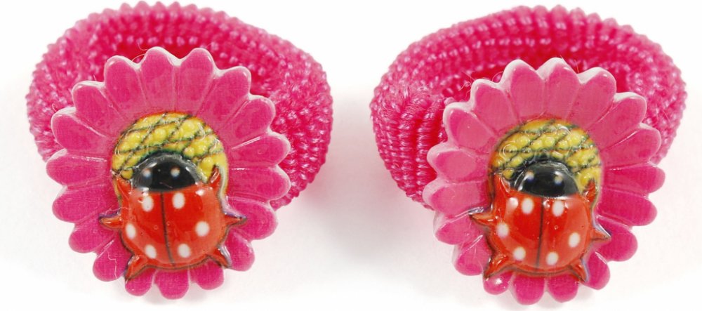 Menší froté gumičky s plastovou ozdobou s beruškou.