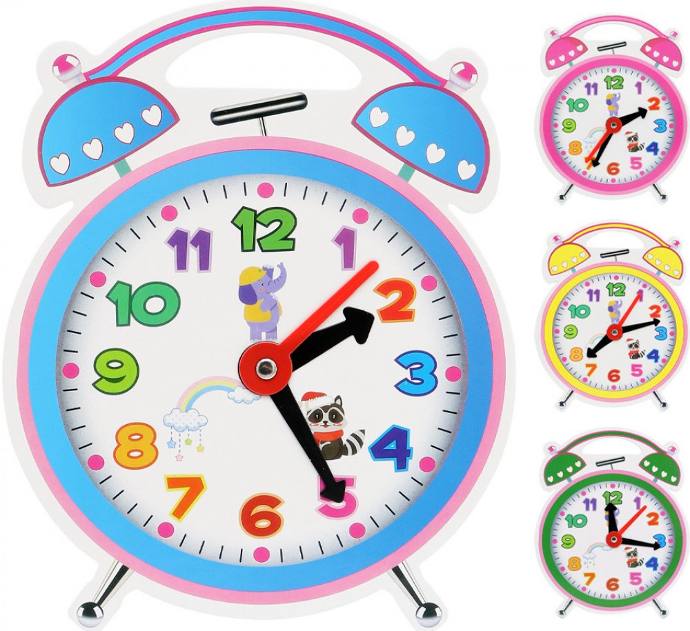 Hravou formou se děti naučí znát čas pomocí otočných ručiček.černé plastové ručičky s červenou vteřinovkou