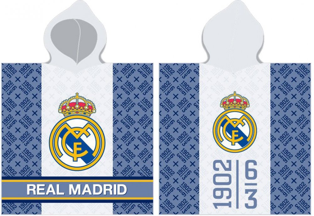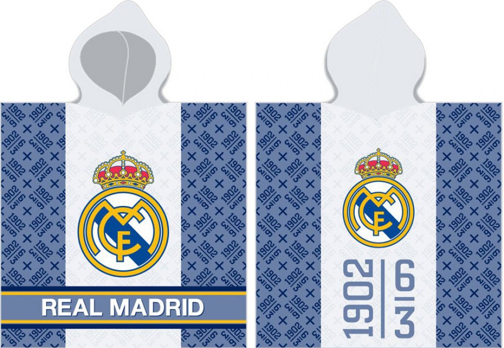 Dětské plážové pončo je ideálním doplňkem na pláž, k bazénu, ale také do koupelny. Stačí pončo obléct přes hlavu a už je dítě chráněno, může si hrát a je schované. Klasický ručník či osušku si děti musí stále držet a už nezůstávají volné ruce na hraní. Když se pončo pěkně rozloží a kapuce narovná, dá se na pončo lehnout jako na osušku.• vhodné na plovárnu, dovolené ... • univerzální velikost (2 - 8 let) • rozměr 60 x 120cm + kapuce • 100% bavlna - velmi příjemný a savý materiál • výrobek s originální licencí REAL MADRID • výrobce: CARBOTEX, EU