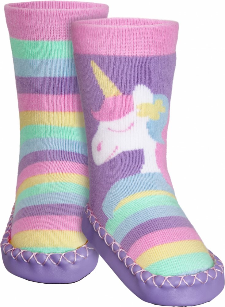 Praktické ponožky s měkkou protiskluzovou podrážkou a lemem z ekokůže v barvě ponožek s ozdobným švem, ponožkové papuče - bačkorky zajistí malým prstíkům, že budou pořád v teple a pohodlí.