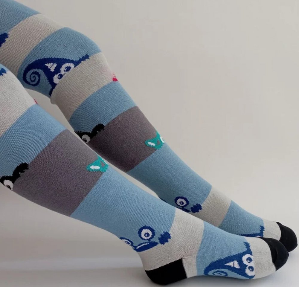Barevné obrázkové punčochové kalhoty pro kluky a holky, mají vysoký podíl bavlny, příjemně se nosí díky elastanu a všitému klínu v sedavé části, mají zesílenou špičku a patu pro delší životnost, motiv – skřítek.