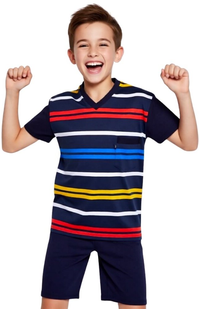 Dětské pyžamo úplet to je kvalitní pyžamo od firmy Foltýn. Moderní střih zaručující maximální pohodlnost. Vrchní díl má výstřih do U. Kalhoty jsou volné, v pase opatřené gumou v tunýlku, která se dá vyměnit. Dětské pyžamo úplet je vyrobeno z jemně česaného bavlněného úpletu ze 100 % bavlny. Tento materiál je vzdušný a velice příjemný. Způsob ošetřování: praní na 40°C, žehlení.