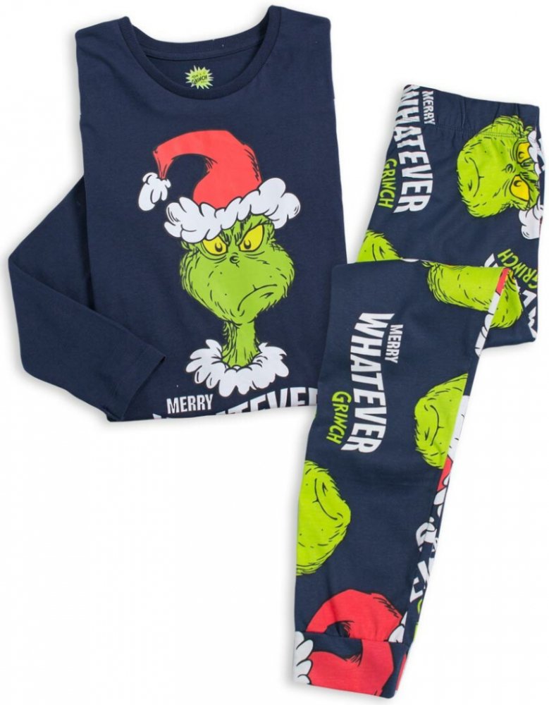 Dětské pyžamo s veselým vánočním obrázkem mrzutého skřítka Grinche. Kalhoty s gumou v pase, příjemný, bavlněný úplet.