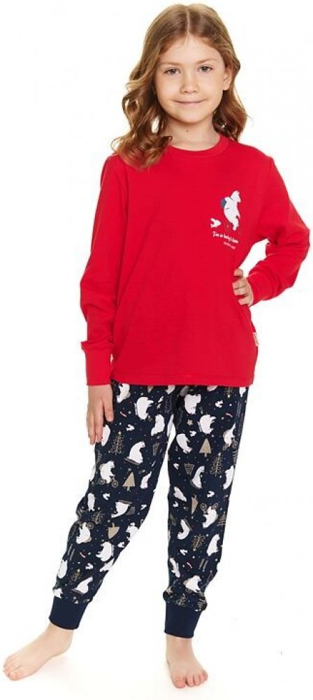 Vaše dítko si toto pyžamo zamiluje pro jeho krásné barevné provedení a roztomilý motiv medvídků. Pyžamo je vyrobené ze 100% bavlny, takže je vhodné i pro citlivou pokožku a je dostatečně prodyšné. Pyžamový vršek má dlouhé rukávy a kulatý výstřih. Je červené, s nápisem a malým potiskem na boku.