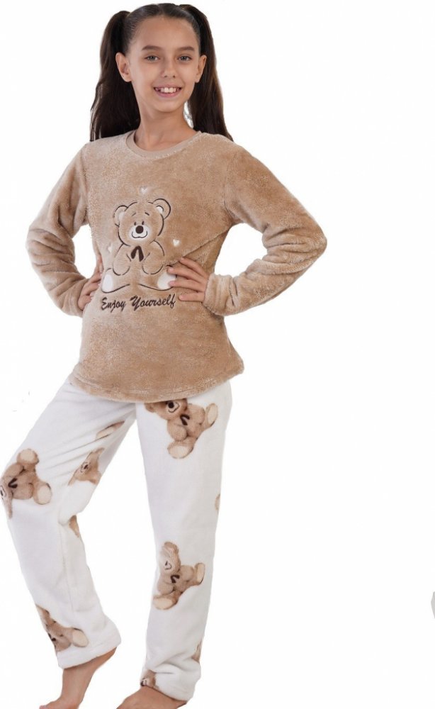 Bílé i hnědé pyžamo extra teplé huňaté holčičí s PLYŠOVÍMI MEDVÍDKY