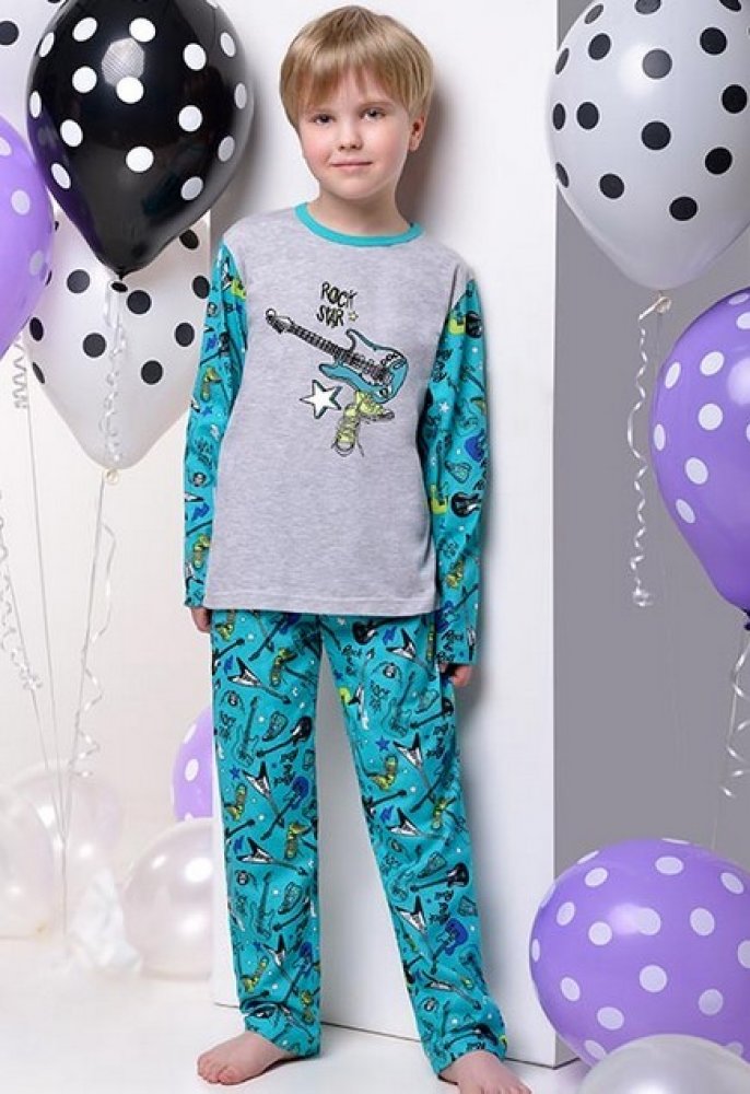 Dětské pyžamo Rock Star Šedá tyrkysová Dlouhé