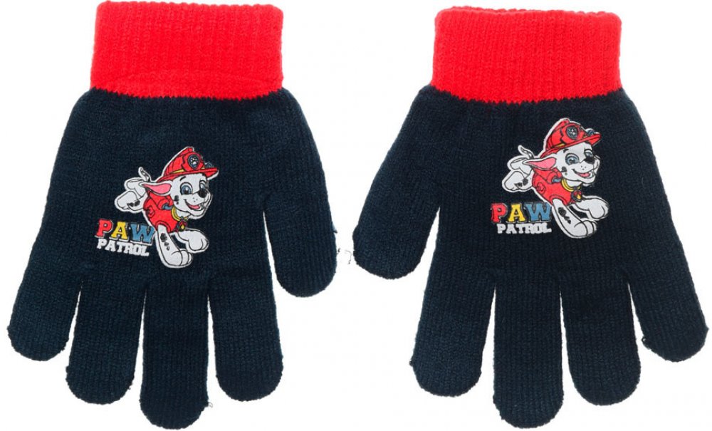 Dětské pletené prstové rukavice s Tlapkovou patrolou. Délka rukavice od kraje lemu po špičku prostředního prstu je 15cm.