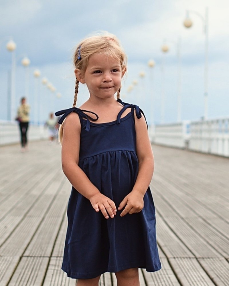 - univerzální, osvědčený střih, který vydrží opravdu dlouho. Nejprve se nosí jako šatičky a když holčička povyroste, povolíte ramínka a šatičky slouží jako tunika. Materiál je hodně pružný, takže i s rostoucím obvodem velikost dlouho vydrží.