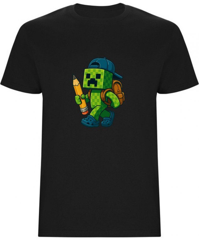 Stylové tričko s Creeperem a školními doplňky. Skvělý doplněk do šatníku každého malého Minecraft nadšence.