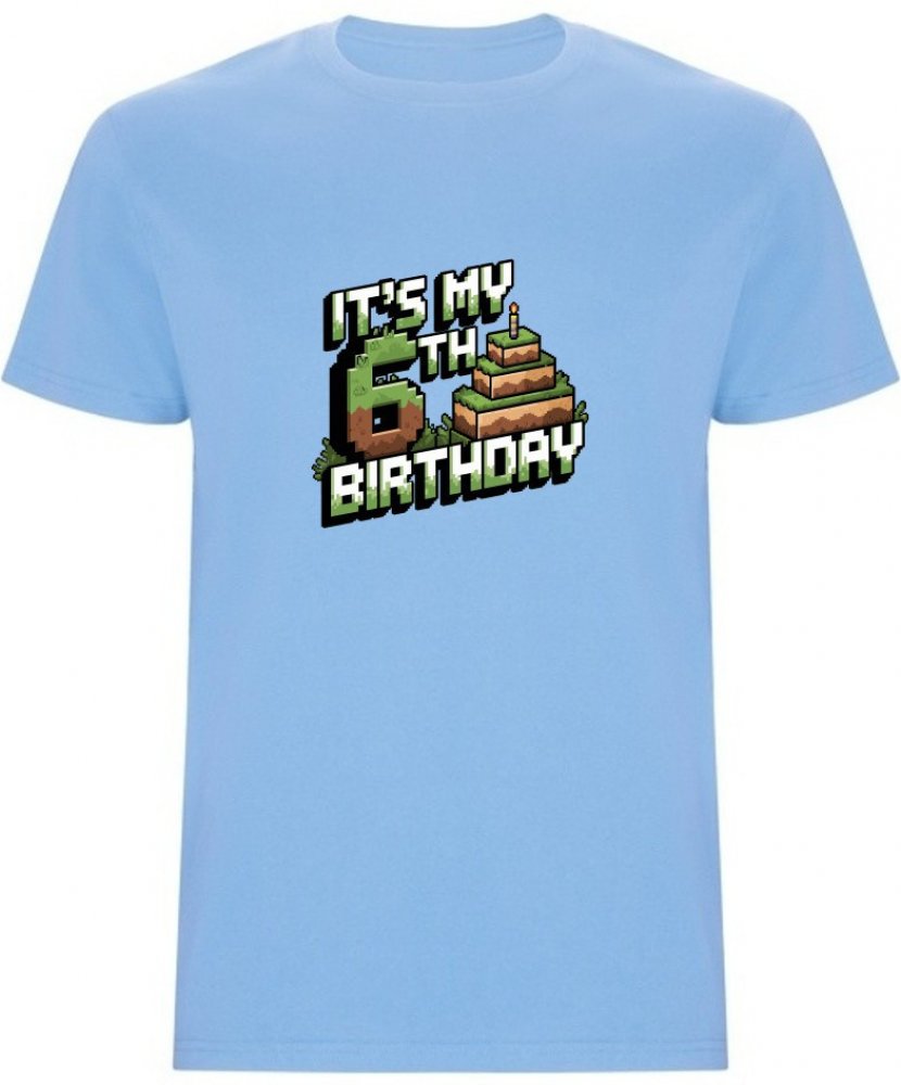Dětské tričko MINECRAFT ŠESTÉ NAROZENINY nebesky modrá