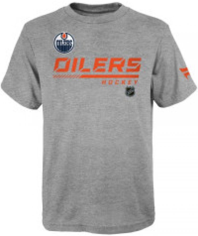Dětské NHL triko značky Fanatics v jednoduchém grafickém provedení a v šedé barvě. Na této kartě s nápisem a logem týmu Edmonton Oilers.