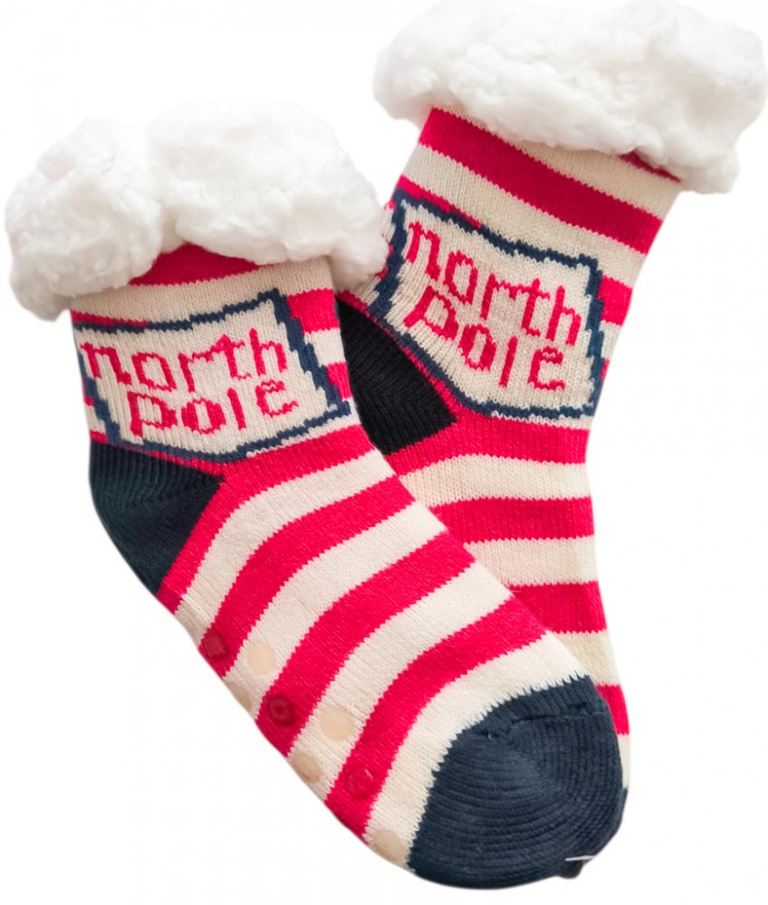 Dětské vánoční ponožky papuče s protiskluzem Pruhované north pole