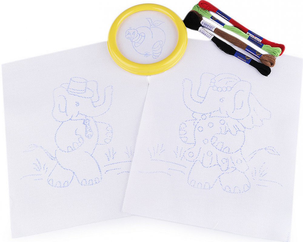 Zabavte vaše šikovné děti vyšíváním. Souprava dětského vyšívání obsahuje kulatý rámeček s látkou, která má předtištěný vzor, 4 kvalitní vyšívací příze mouline ze 100% bavlny a dvě větší plátna (23 x 26 cm) s předtištěnými motivy.
