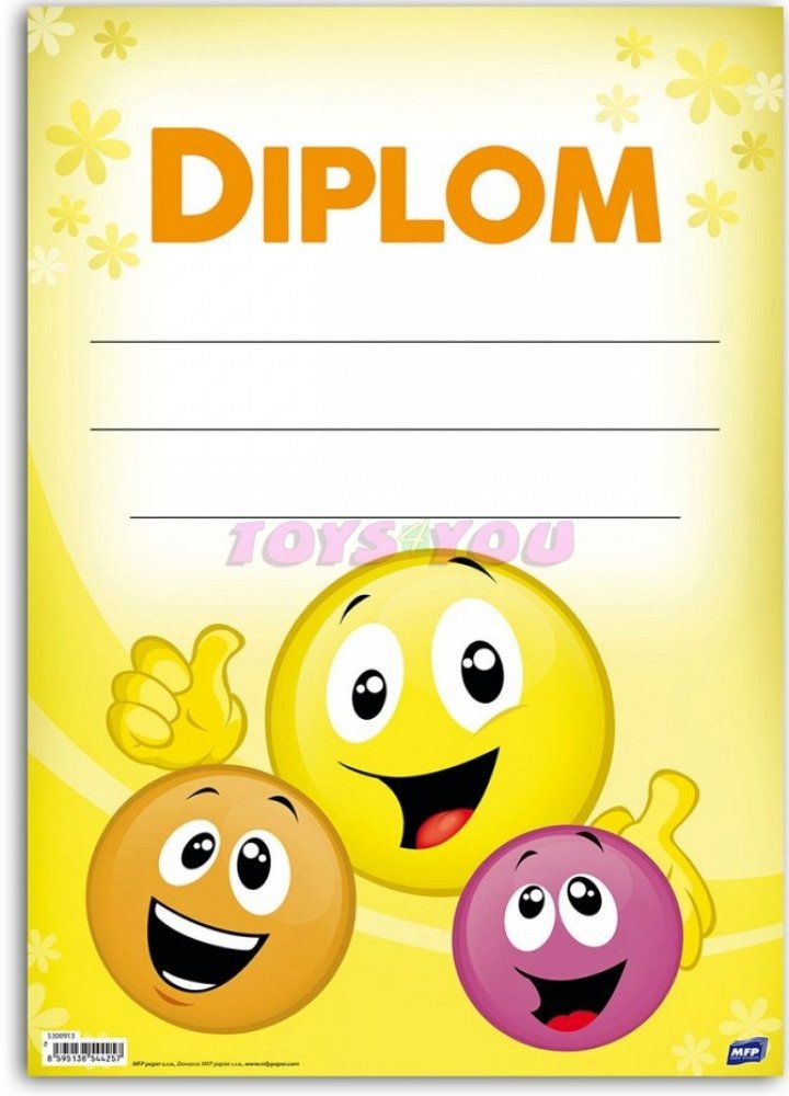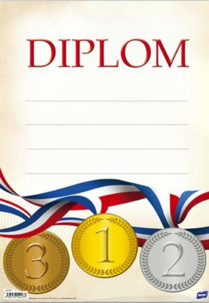 Barevný dětský diplom s obrázkem medailí. Za každý dosažený úspěch je potřeba dostat písemnou listinu. Určený pro sportovní aktivity. Diplom obsahuje 4 řádky kam můžete napsat jméno, umístění, za co diplom dostal, popřípadě kdo jej uděluje. Formát: A4 Gramáž: 300 g Druh papíru: křídový, matný Uvedená cena je za 1 ks.