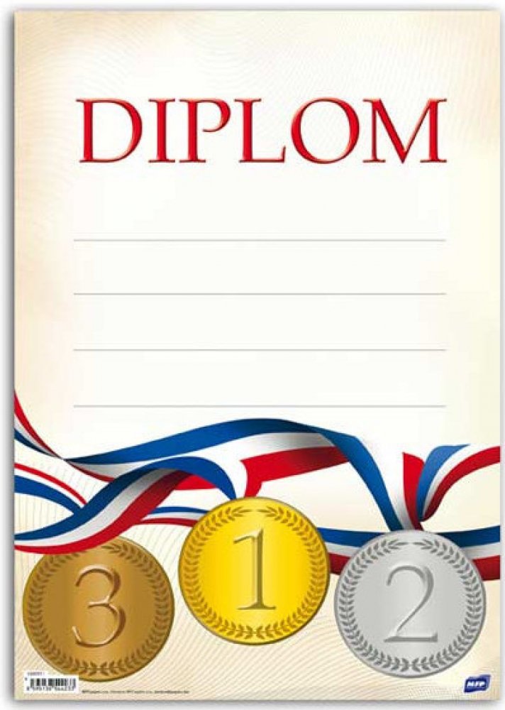 Barevný dětský diplom s obrázkem poháru. Za každý dosažený úspěch je potřeba dostat písemnou listinu. Určený pro sportovní aktivity. Diplom obsahuje 4 řádky kam můžete napsat jméno, umístění, za co diplom dostal, popřípadě kdo jej uděluje..