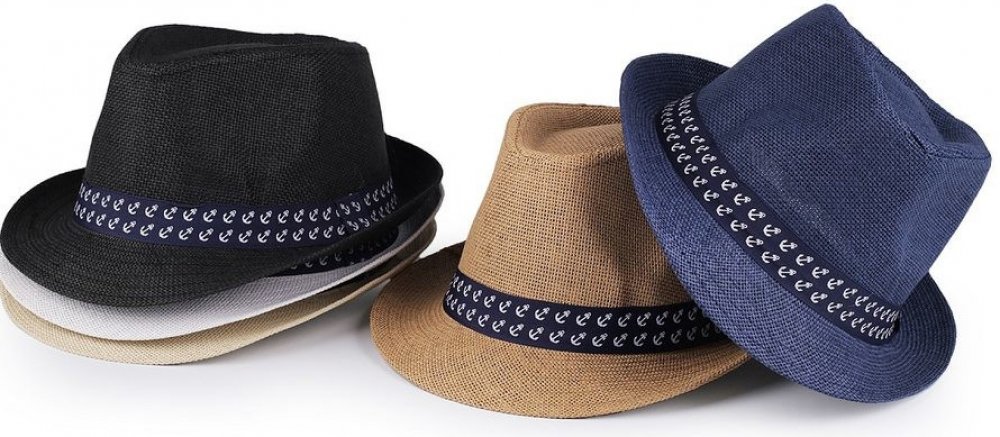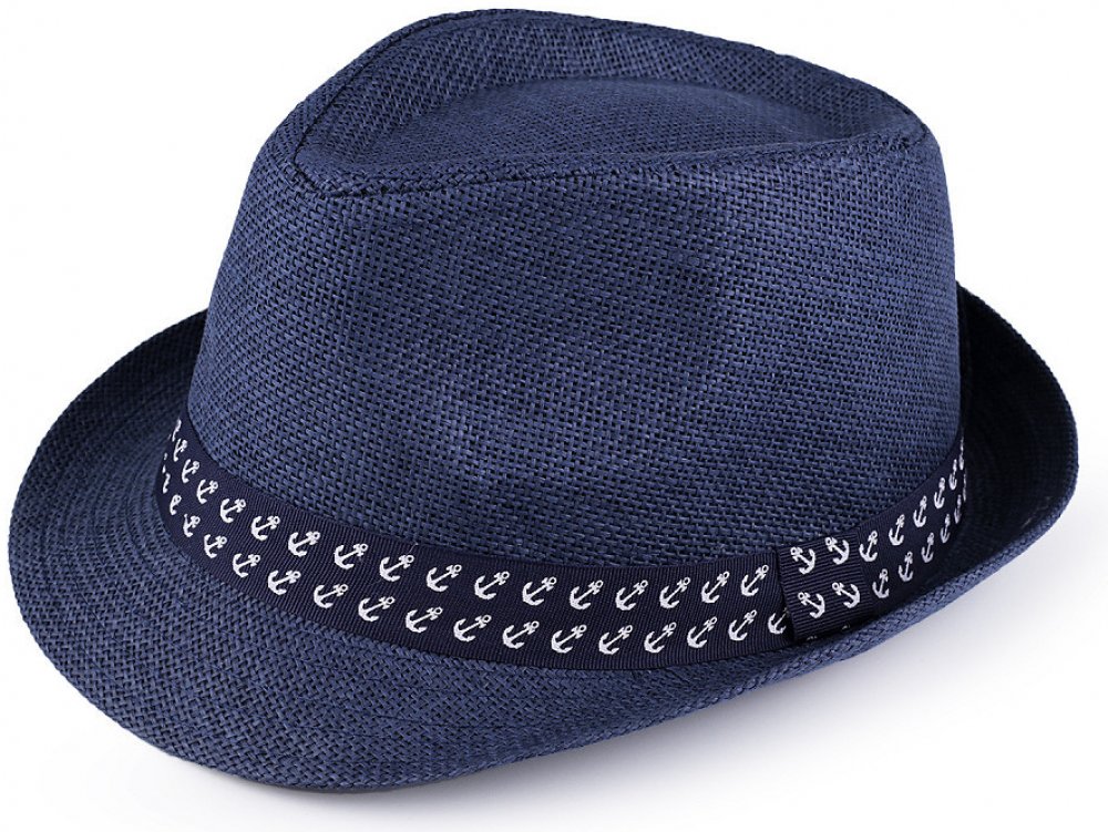 Letní dětský klobouk zdobí stuha s potiskem kotviček. V teplých dnech klobouk skvěle ochrání před sluncem, je velmi lehký a prodyšný. Je velice oblíbený, děti rádi vypadají jako dospěláci, což jim klobouk typu Fedora umožní.